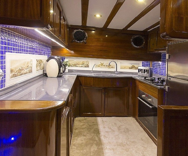 Managed by a dedicated crew, the vessel guarantees impeccable service standards, with personalized attention to detail and a commitment to guest satisfaction. Furthermore, the provision of air conditioning, operational for three hours daily, enhances onboard comfort, ensuring an optimal environment for relaxation and enjoyment.