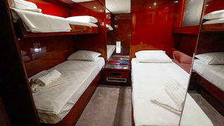 Step aboard and be enveloped in an atmosphere of refined elegance and unparalleled comfort. Each detail, meticulously crafted, promises an indulgent experience. From the well-appointed cabins with modern amenities to the fully-equipped kitchen ready to tantalize your taste buds, Bona Dea caters to your every need.